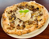 Black truffle sauce mix with ricotta cheese topped with sausage, mushrooms, truffle oil & fresh burrata cheese.